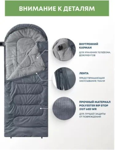 Внешняя ткань — Polyester Rip Stop 210T 68D с водоотталкивающей пропиткой: прочная, износостойкая, но мягкая, защищает от влаги, например от конденсата в палатке. Подкладка — дышащий Polycotton T/R 88X64 с добавлением хлопка: легкая, приятная на ощупь, с высокой паропроницаемостью, эффективно отводит влагу от тела. Утеплитель Hollow Fiber TPH собственной разработки содержит волокна с микроскопическими порами, которые создают дополнительные воздушные камеры — это обеспечивает высокую теплоизоляцию при небольшом весе. Упругие волокна быстро расправляются после распаковки, придавая спальнику объем и мягкость.Бренд: RSP