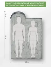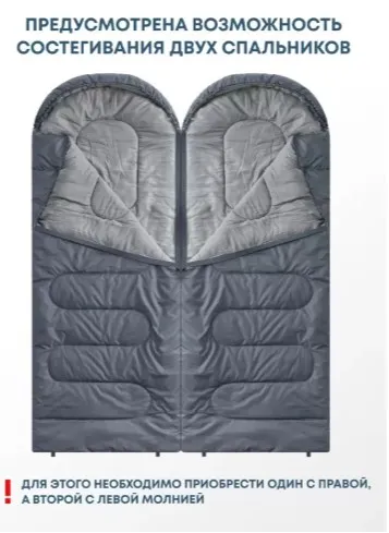 Два спальника с разным направлением молнии можно состегнуть между собой, получив один большой шириной 160 см — в таком варианте комфортно разместятся двое взрослых или двое с ребенком.
