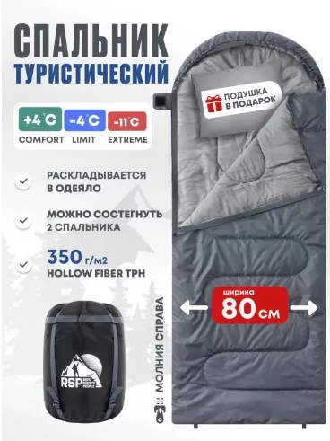 Спальный мешок RSP Sleep 350 R (серый, 22080см, молния справа)