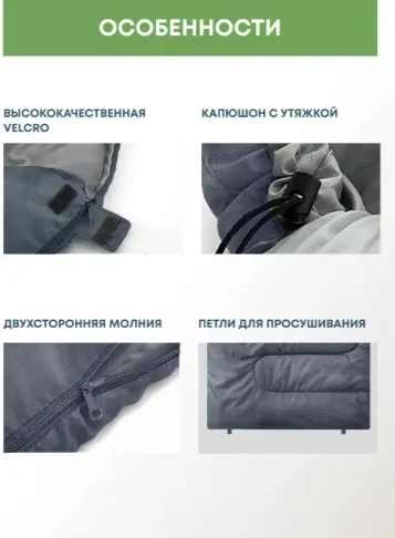 В модели предусмотрено дополнительное утепление в области груди и ног — здесь расположены увеличенные секции с усиленной набивкой, которые помогают быстрее согреться и защищают наиболее чувствительные к холоду участки тела.
